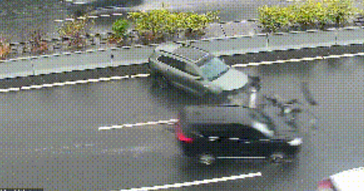 不料后方一辆黑色小车来不及避让导致发生二次追尾事故,绿色小车车头被撞,零件散落一地,两车不同程度受损。所幸车上人员都系了安全带,无人受伤。