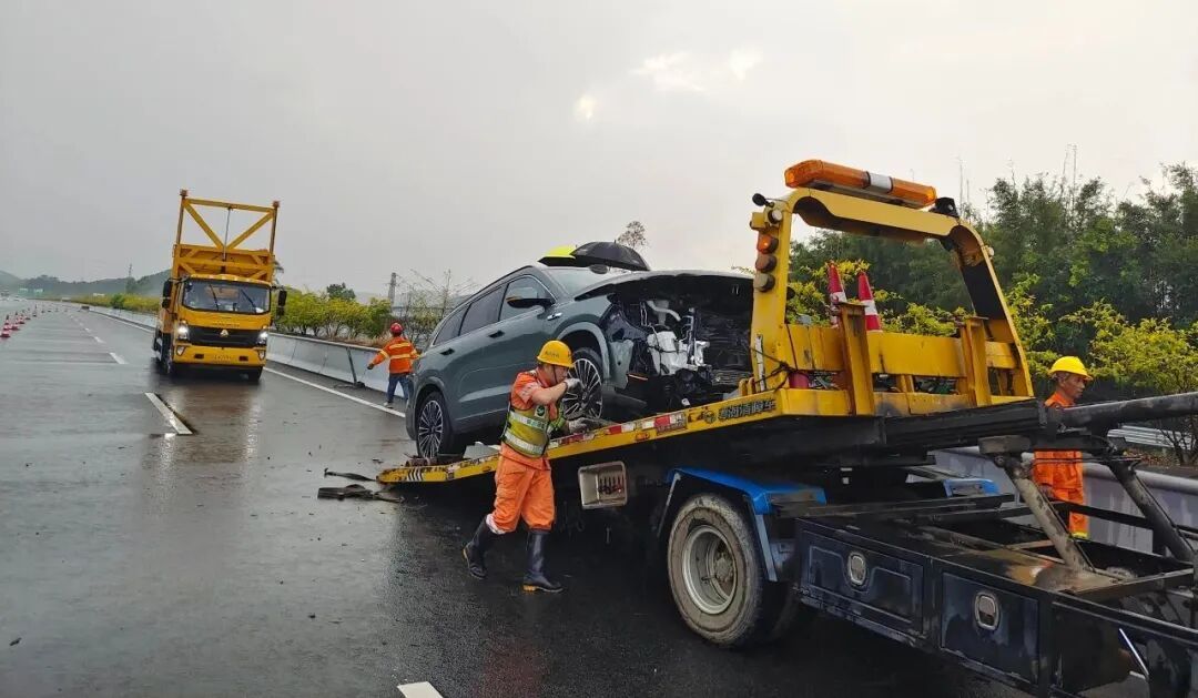 高速执勤民警到达现场后,迅速将车上人员撤离到安全地带并联系拖车协助车主撤离高速公路,同时对绿色小车的驾乘人员进行了严厉的批评教育。