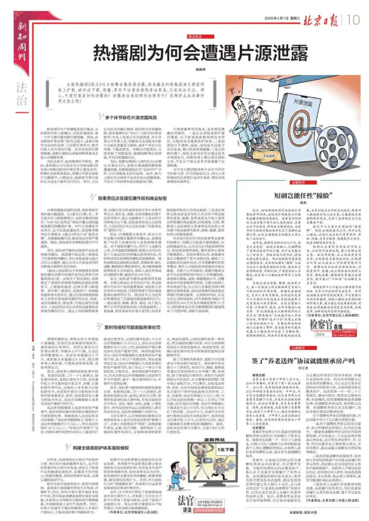 近年来,我国持续加大知识产权保护力度,但仍有片源泄露事件发生,这不仅损害著作权人的合法权益,更扰乱了影视行业的健康发展秩序,急需多方协同发力,构建全链条、多层次的防护体系,从源头遏制侵权行为。